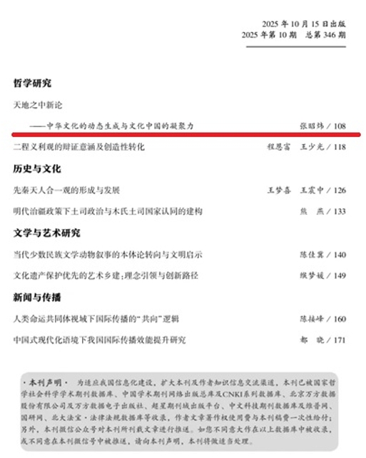 在对于“中”的中间之中、测影之中解读基础上,论文提出第三种新解读,并对“天地之中”概念进行了哲学重构,提出其包含“正中”“时中”“圆中”三重动态内涵,尤其强调“中”所蕴含的阴阳氤氲、化生万物的创造性动力。这一结构不仅为“制礼作乐”提供了宇宙论依据,也解释了中国文明兼具向心力与开放性的特质,并提出了“统六之六合整体”等新概念。